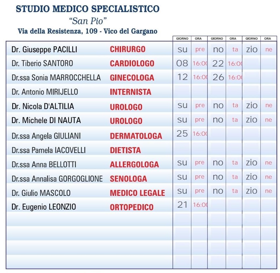 Branche: cardiologia, urologia, ginecologia, medicina legale e dermatologia.